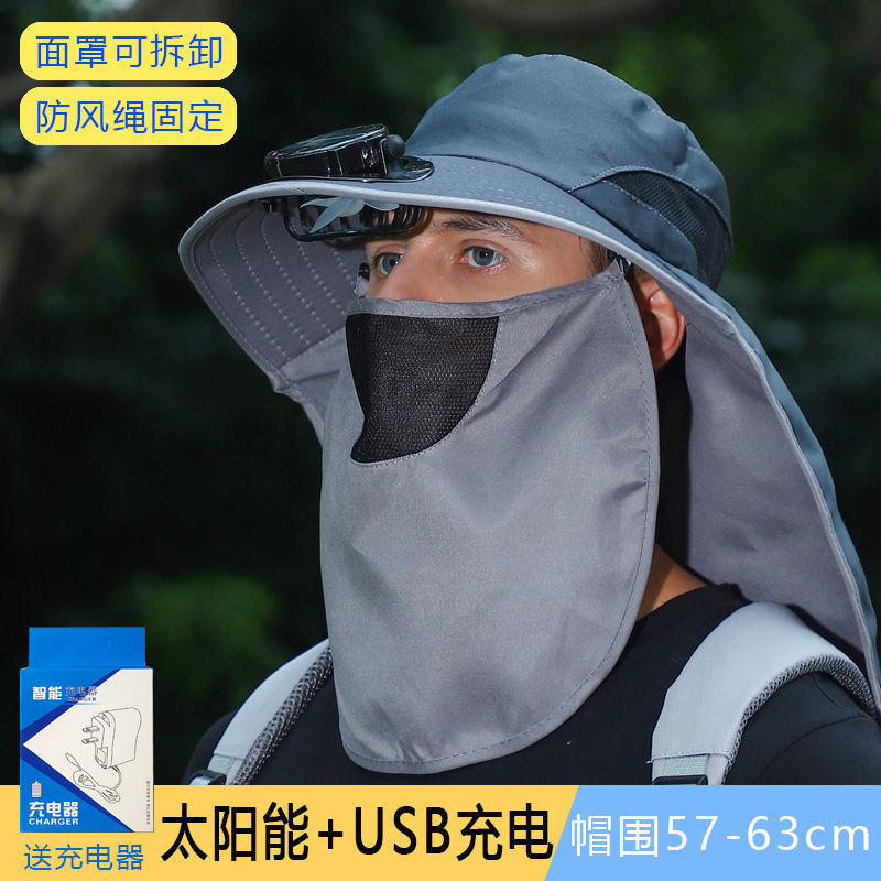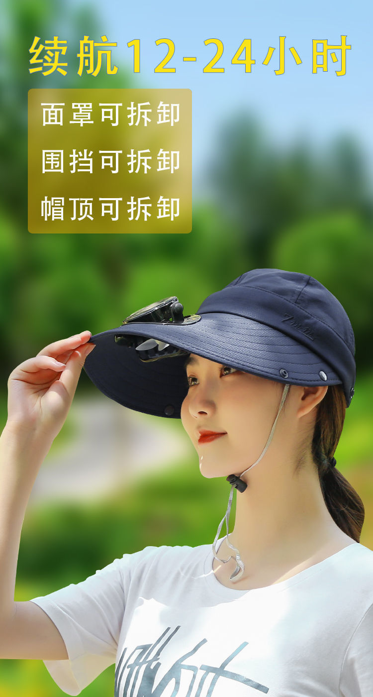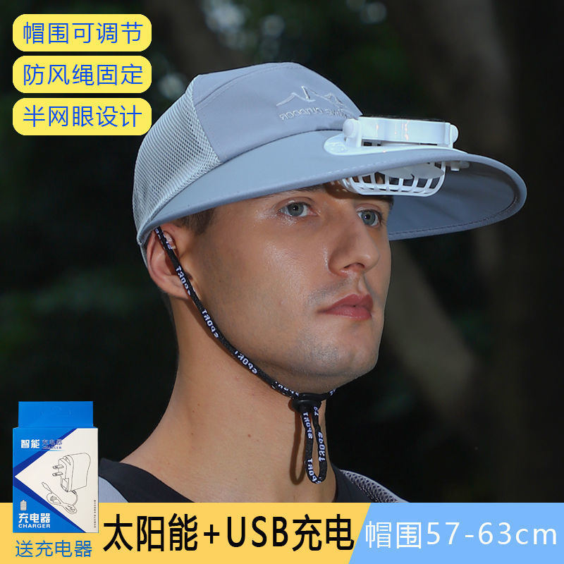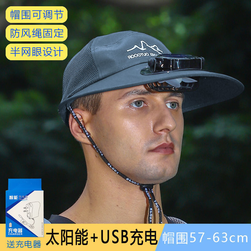 Solar Fan Hat干农活太阳能带风扇的帽子充电电扇帽男女夏遮阳钓鱼帽大棚采茶帽