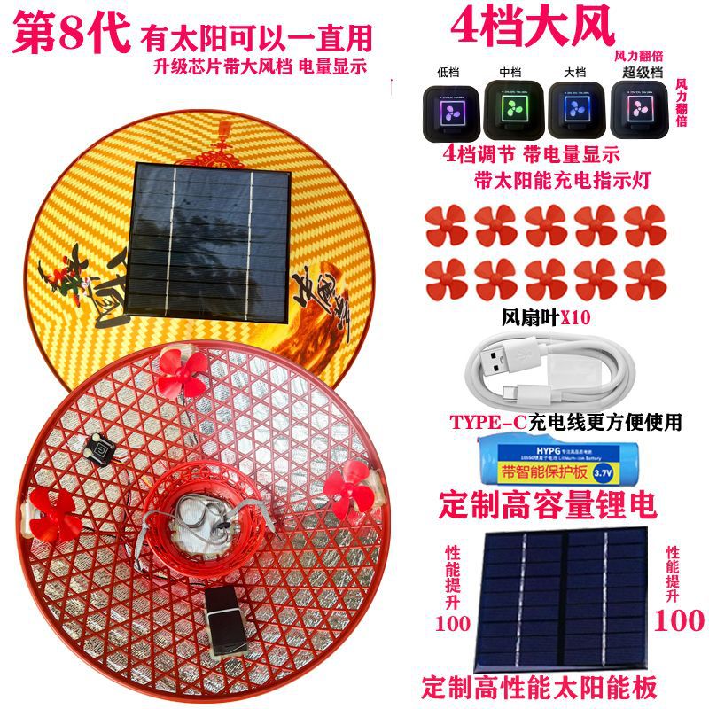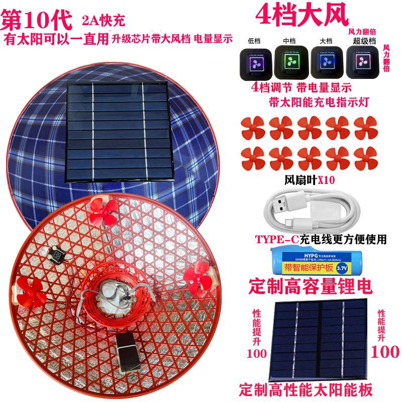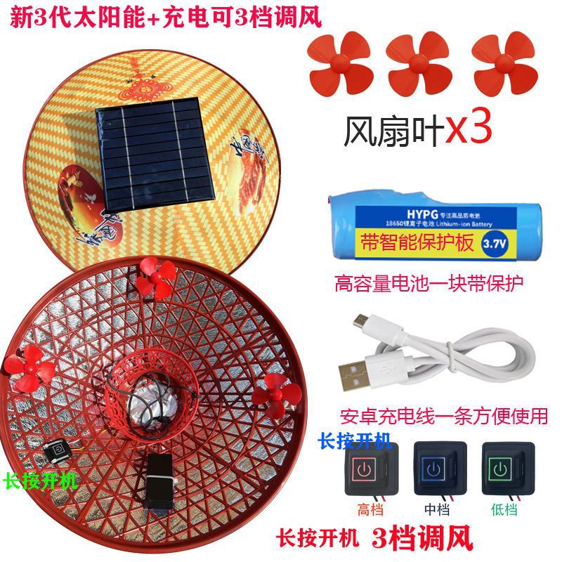 | 颜色 | 第二代【纯太阳能带动二风扇】, 第二代【纯太阳能带动三风扇】, 新一代【纯锂电带动三风扇】可调速, 第一代【纯锂电带动三风扇】不可调速, 第三代太阳能+锂电池组合 3风扇, 第四代太阳板+锂电池自动充电3风扇, 第五代【3挡调速开关边开边充】, 第6代帽加厚太阳能锂电自动充, 8代太阳能+锂电4挡大风边开边充, 10代4挡加厚太阳能锂电自动充电, 4风扇4倍风力4档电显自动充电, 5风扇5倍风力4档电显自动充电 |